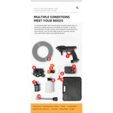 - نازلهای متنوع برای هر نوع شستشو: کارواش Camper با مجموعهای از نازلهای مختلف ارائه میشود که به شما امکان میدهد نوع پاشش آب را متناسب با نیاز خود تنظیم کنید. از پاشش پهن برای شستشوی سطوح بزرگ گرفته تا پاشش متمرکز برای از بین بردن لکههای سخت، این دستگاه همه چیز را تحت کنترل شما قرار میدهد.