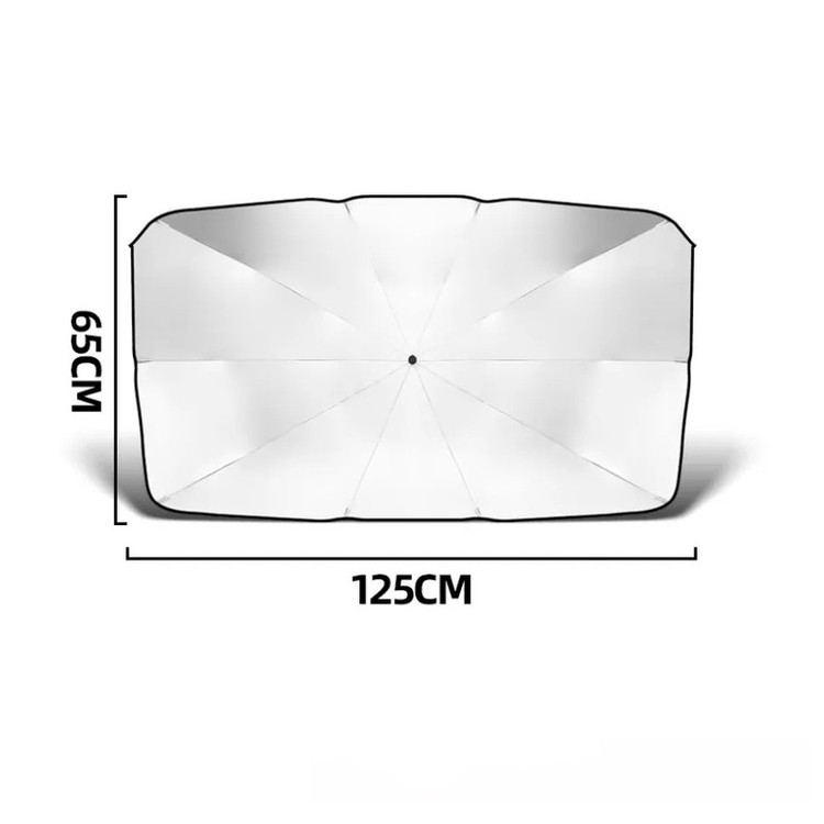 طراحی شده با پارچه محافظ UV، این محصول برای هر گونه محافظت در برابر نور خورشید عالی است.با طراحی هوشمندانه این چتر (sun shade umberella) نگران افتادن آفتاب گیر از شیشه جلو خود نباشید و آفتابگیر شیشه جلو چتری دارای ده دنده فولادی است که به خوبی پشتیبانی و از سقوط جلوگیری می کند.طراحی تلسکوپی آفتاب گیر، باعث شده این محصول استفادهای آسان داشته باشد و باز و بسته کردن آن سریع و بدون زحمت باشد.طراحی فوقالعادهای ک با پوشش ضد آفتاب روکش نقره به شدت نور خورشید را منعکس می کند و دمای داخل خودرو را کاهش می دهد و از خودروی شما محافظت می کند.سایبان ضد آفتاب ابزاری کاربردی برای محافظت از داخل خودرو در برابر نور UV و کمک به کاهش دمای داخل ماشین است.