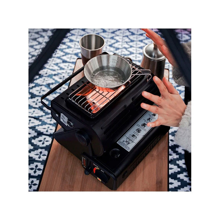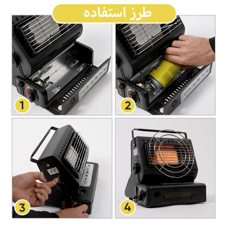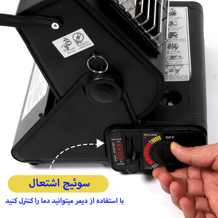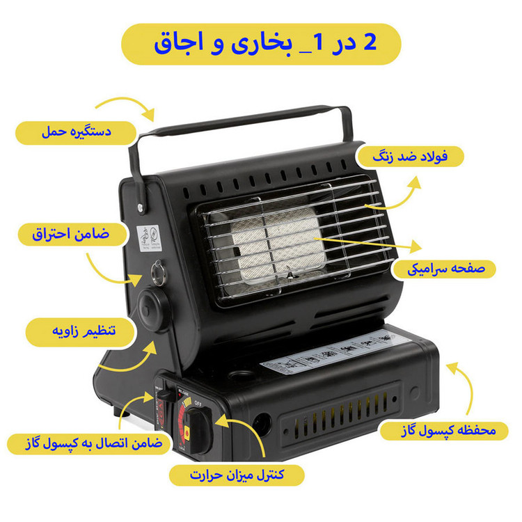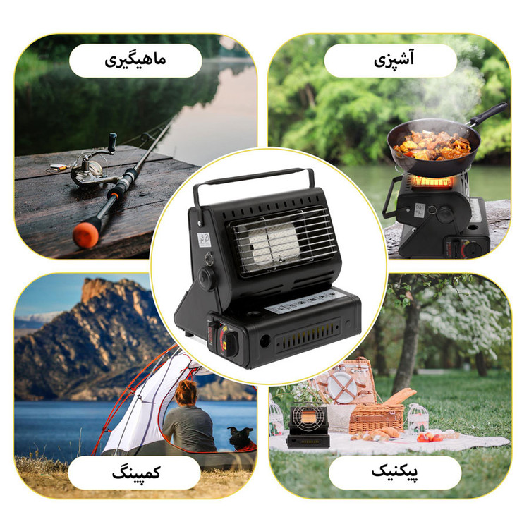 بخاری سفری مدل YC-808B در ابعاد و وزن بسیار مناسبی عرضه شده است و به شما این امکان را میدهد تا با همراه داشتن آن همیشه لذت گرم بودن در فضای داخلی چادر را تجربه کنید و از خوردن غذای داغ حتی در هوای بسیار سرد لذت ببرید.عملکرد این محصول بخاری قابل حمل است که می توان از آن به عنوان اجاق کوهنوردی هم استفاده کرد و خرید بخاری مسافرتی می تواند دو مزیت برایتان داشته باشد. یک لیتر آب را در ده دقیقه با قدرت 1.3 وات به جوش می آورد.طراحی این محصول به گونه ای است که به صورت چرخشی گرما را به صورت جهت دار پخش می کند. به دلیل شیب طراحی شده در قسمت درپوش می توانید جهت و زاویه آن برای پخش گرما تنظیم کنید.برای داشتن غذا یا چای گرم هم میتوانید از بخاری سفری استفاده کنید. با تهیهکردن یک کپسول قابل حمل از گاز بوتان به راحتی می توانید از آن استفاده کنید.کوهنوردان و علاقهمندان به طبیعتگردی به دلیل شرایط خاصی که هنگام فعالیت تجربه میکنند نیاز به استفاده از ابزاری در حجم و اندازه کوچک و سبک، اما بادوام و مستحکم دارند.قسمت گرمایش آن دارای صفحه سرامیکی هست که بر روی آن صفحه گرد (سبد) قلزی نصب می شود که می توانید بر روی آن ظرف غذا برای پختن ، داغ نمودن نان تست یا کتری آب سفری را برای بجوش آمدن آب بگذارید.نحوه استفاده از این بخاری سفری: ابتدا کپسول را داخل محفظه گذاشته سپس ضامن کشویی را به پائین می کشید و سپس با کشیدن یک اهرم در کنار شعله که باعث می شود گردش هوا سریعتر و احتراق را قوی تر کند و همزمان چرخش ولوم یا دستگیره تنظیم شعله ، فندک عمل می کند و می توانید پس از روشن شدن با همبن ولوم، میزان شعله یا حرارت را تنظیم کنید. با نصب یک کپسول 200 گرمی در داخل آن بستگی به تنظیم میزان حرارت امکان استفاده 2 الی 3 ساعت را دارد.xتوجه : این بخاری مثل سایر بخاری ها تولید گاز منوکسید می نماید اما به نسبت مصرف، کمتر این گاز را تولید می کند لذا به هیچ وجه در محیط کاملا بسته نباید از آن استفاده نمود.