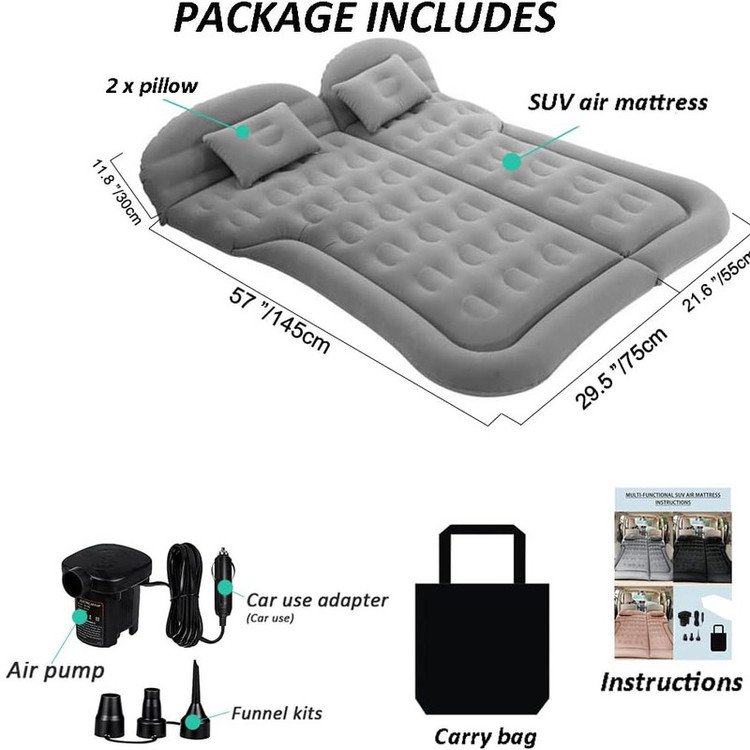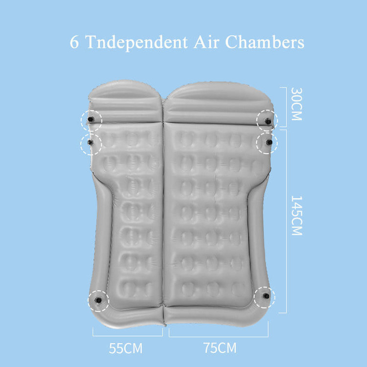 تشک بادی ، تاشو، حمل آسان. این بسته شامل 1 تشک بادی، 2 عدد کوسن هوا، 1 عدد پمپ باد، 1 عدد کیسه نگهداری، می باشد. تقریبا. 175 × 130 سانتی متر / 68.9 × 51.2 اینچ، لطفاً قبل از خرید، اندازه صندلی عقب ماشین خود و جزئیات مقایسه دقیق نقشه اندازه دقیق را اندازه بگیرید. تشک بادی از پی وی سی ضخیم و با کیفیت بالا ساخته شده است و سازگار با پوست و سازگار با محیط زیست است. محافظ سر، می تواند به عنوان پشتی برای نشستن و دراز کشیدن، محافظت از برخورد سر، تغییر حالت آزادانه استفاده شود. کیسههای هوا در هر دو طرف را میتوان به سرعت در عرض چند دقیقه باز کرد یا به استحکام لازم باز کرد. این تشک بادی دو طرفه چه در ماشین، چه در فضای باز و چه در خانه می تواند به عنوان تخت استراحت استفاده شود. ظرفیت بارگیری فوق العاده 650 پوندی دارد و فضایی را برای 2 تا 3 بزرگسال ارائه می دهد. برای اکثر خودروهای کوچک / ماشین های میان رده / ماشین های تجاری ، عالی برای کمپینگ و مسافرت می باشد