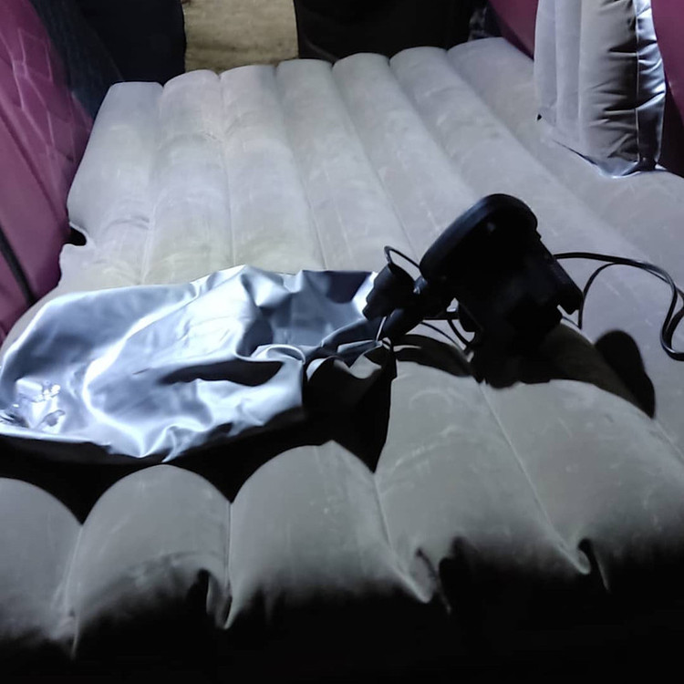 - پمپ باد همراه: این تشک به همراه پمپ باد دستی یا برقی عرضه میشود که باد کردن و تخلیه هوای تشک را در کمترین زمان ممکن انجام میدهد. این ویژگی، فرایند آمادهسازی تشک را سریع و بدون دردسر میکند.